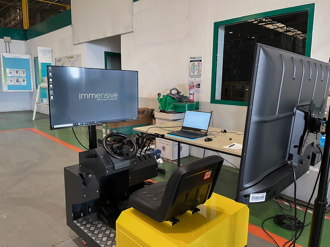 Through the use of the steering wheel, pedals and levers, users will have the opportunity to practice within a virtual environment, manipulating authentic instrumentation. The Forklift VR simulator reproduces the forklift driving experience with extraordinary fidelity, accurately monitoring every action and maneuver performed by users and generating a detailed evaluation report on their performance at the end of the exercise.